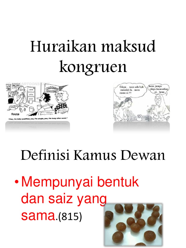 BAB 52 PEMBESARAN BukuTeks133-141 DetailDanPadat. Pada postingan di atas pengertian dari kata kongruen berasal dari beberapa sumber bahasa dan website di internet yang dapat anda lihat di bagian menu sumber. Proses mengira sebenar hanya berlaku sekiranya kanak-kanak faham maksud satu mewakili satu benda dua dengan dua benda dan seterusnya Fuson 1988.